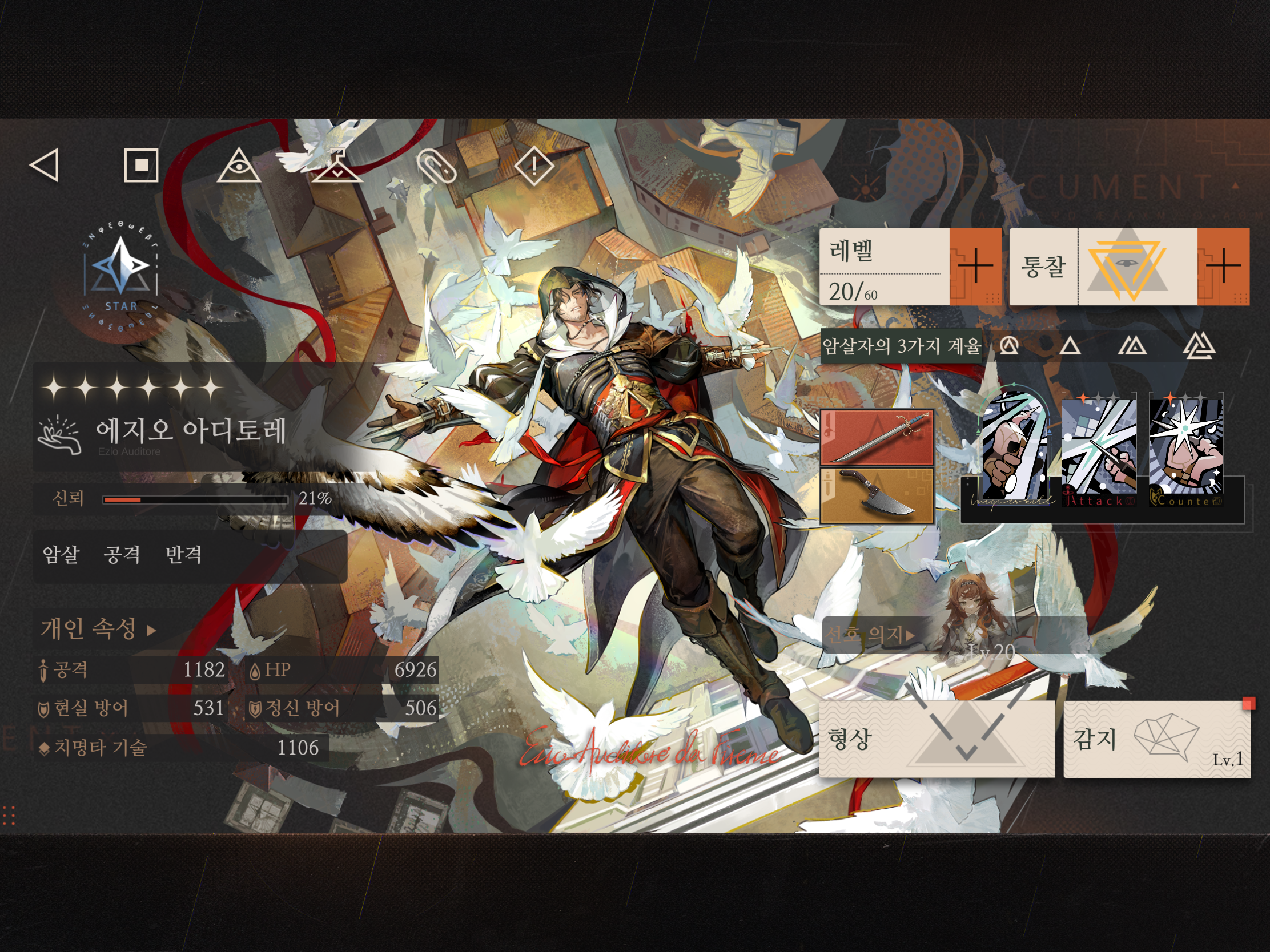 이 일러스트 너무 멋있어서 에지오 천장쳐서 데려왔다. 3통찰 35렙까지 키워줬더니 엄청 강하다.