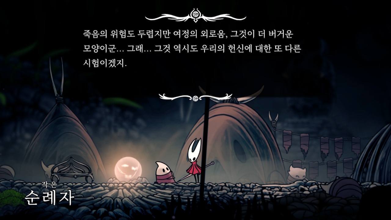사실 게임을 대충 하다보면 모를 수 있는 지점인데 (할나에서는 놓친 것도 많고) 호넷이 말을 할 수 있다보니 이런걸 지적해줘서 스토리 이해가 조금 편리하다.