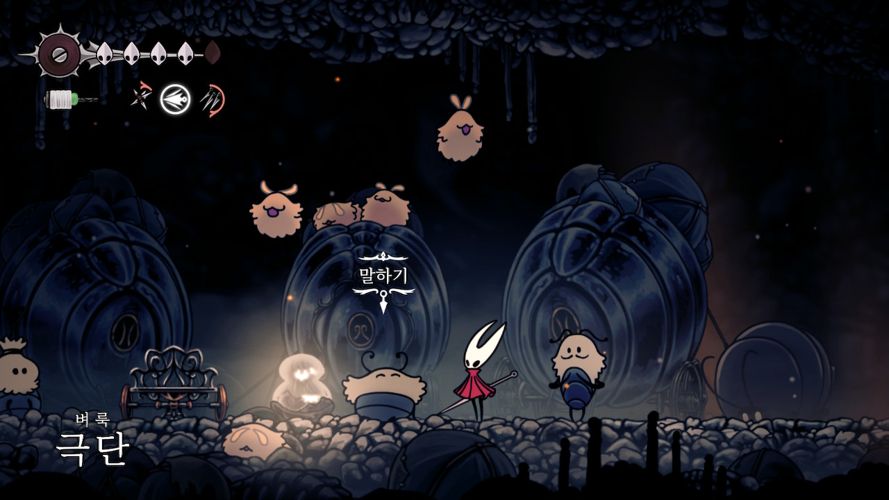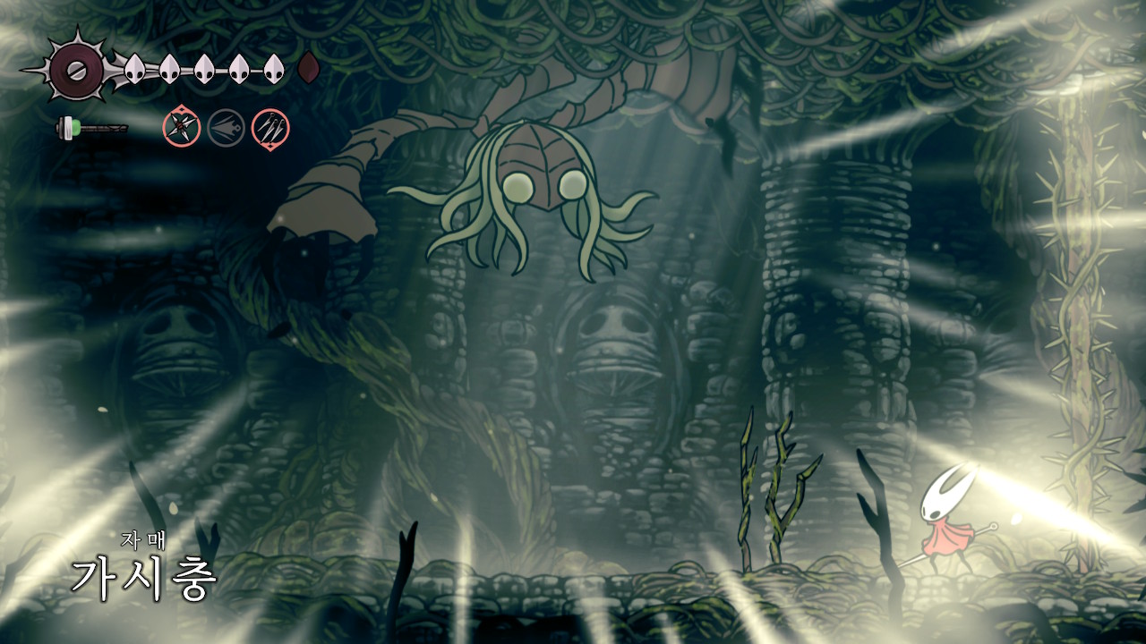 자꾸 할로우나이트랑 비교하게 된다. 2단 점프, 벽치기, 위 공격 아래 공격 전부 내놔~~!